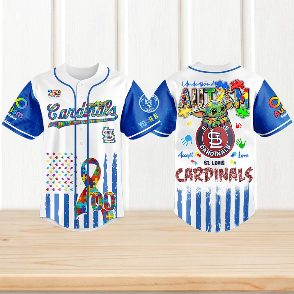 St. Louis Cardinals Baby Yoda Autism Awareness Custom Baseball Jersey