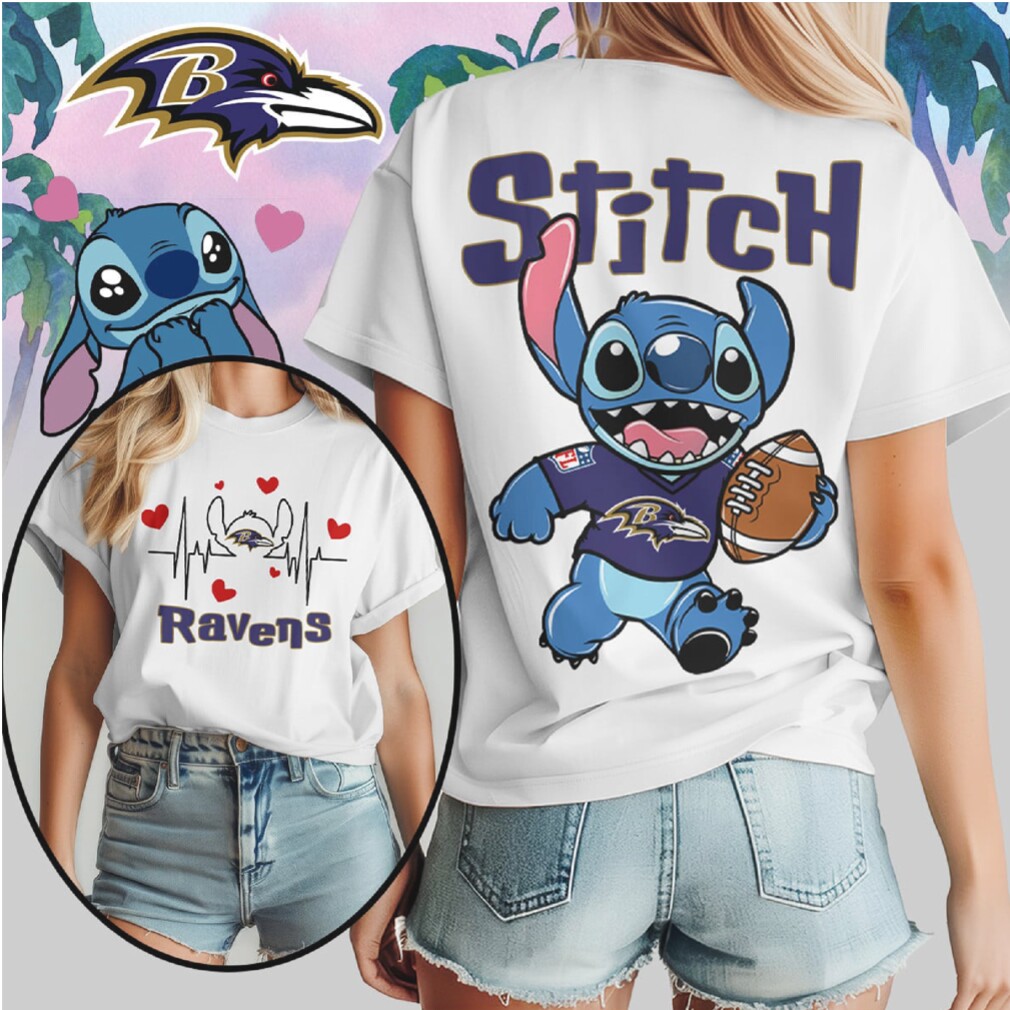 ▶️ About Stitch Baltimore Ravens Football Heartbeat Vintage Purple Fan Gear Cute Character T Shirt – 3D T-Shirt