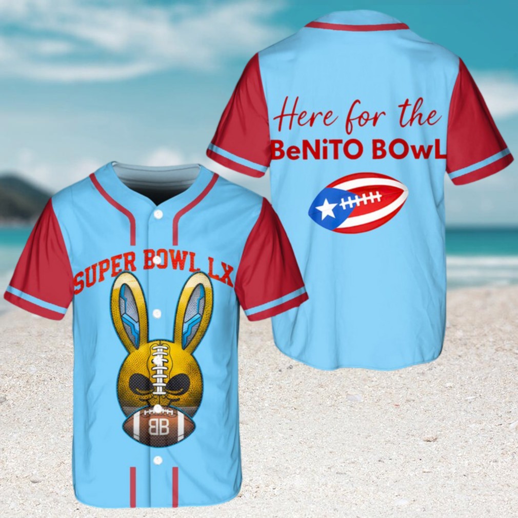 ()Super Bowl LX Benito Bowl Blue Baseball Jersey Puerto Rico Flag, V-neck, Sweater Hoodie and Long Sleeve tee
