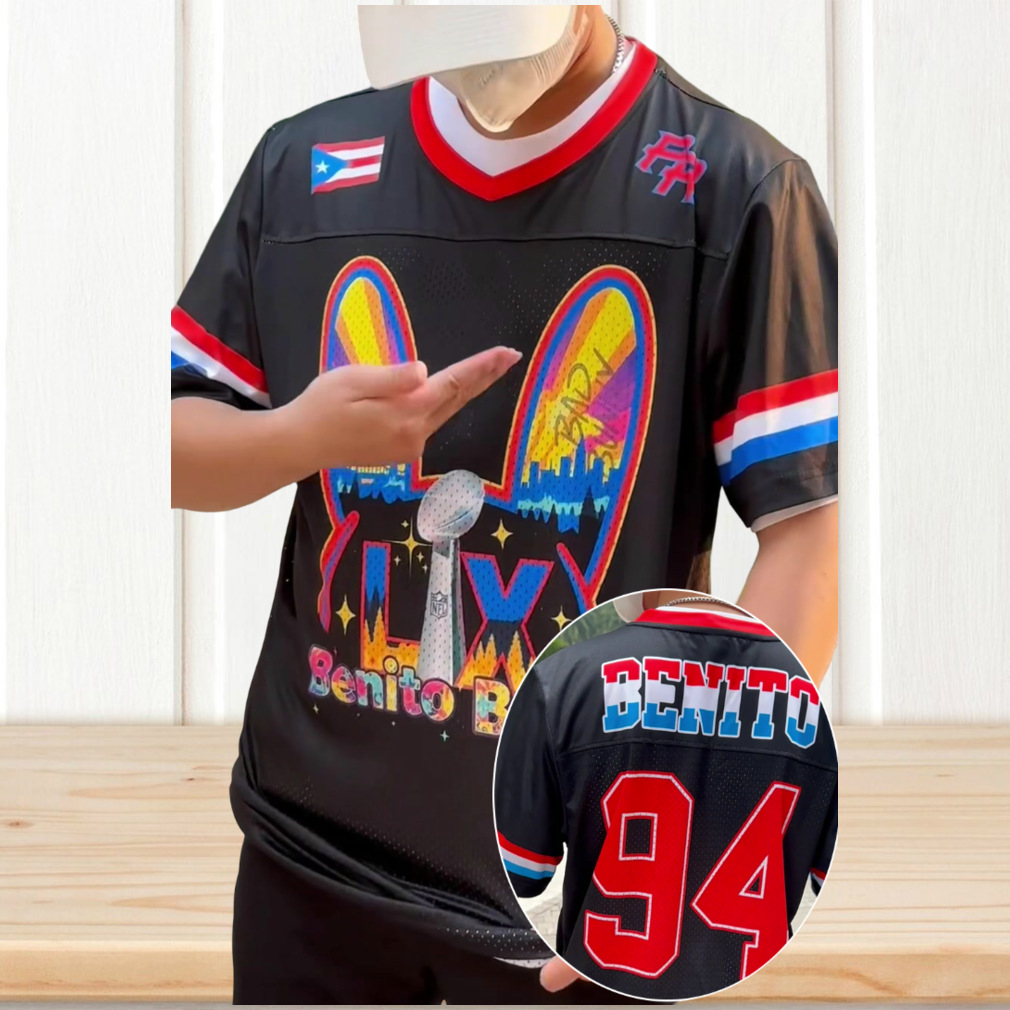 ()▶️ About Team Benito 94 Bad Bunny Puerto Rico Custom Black Football Fan Jersey – 3D T-Shirt