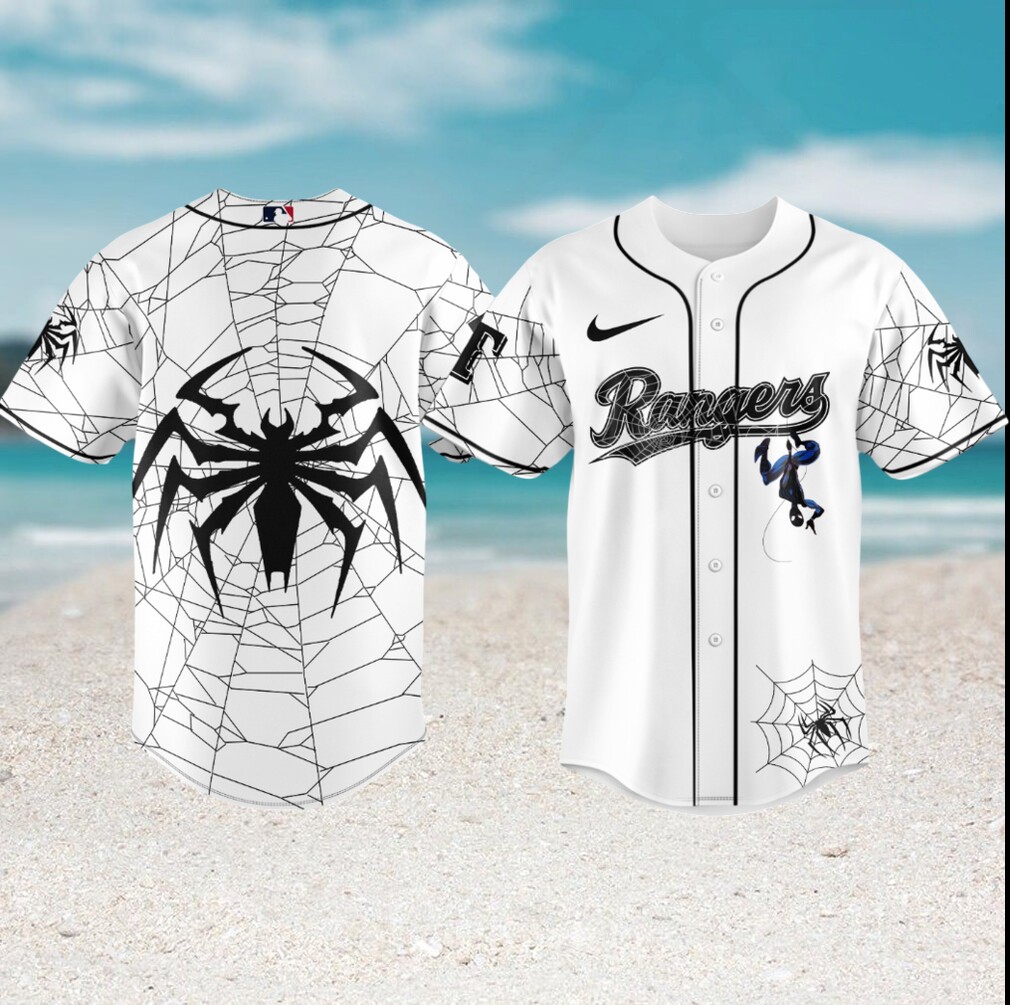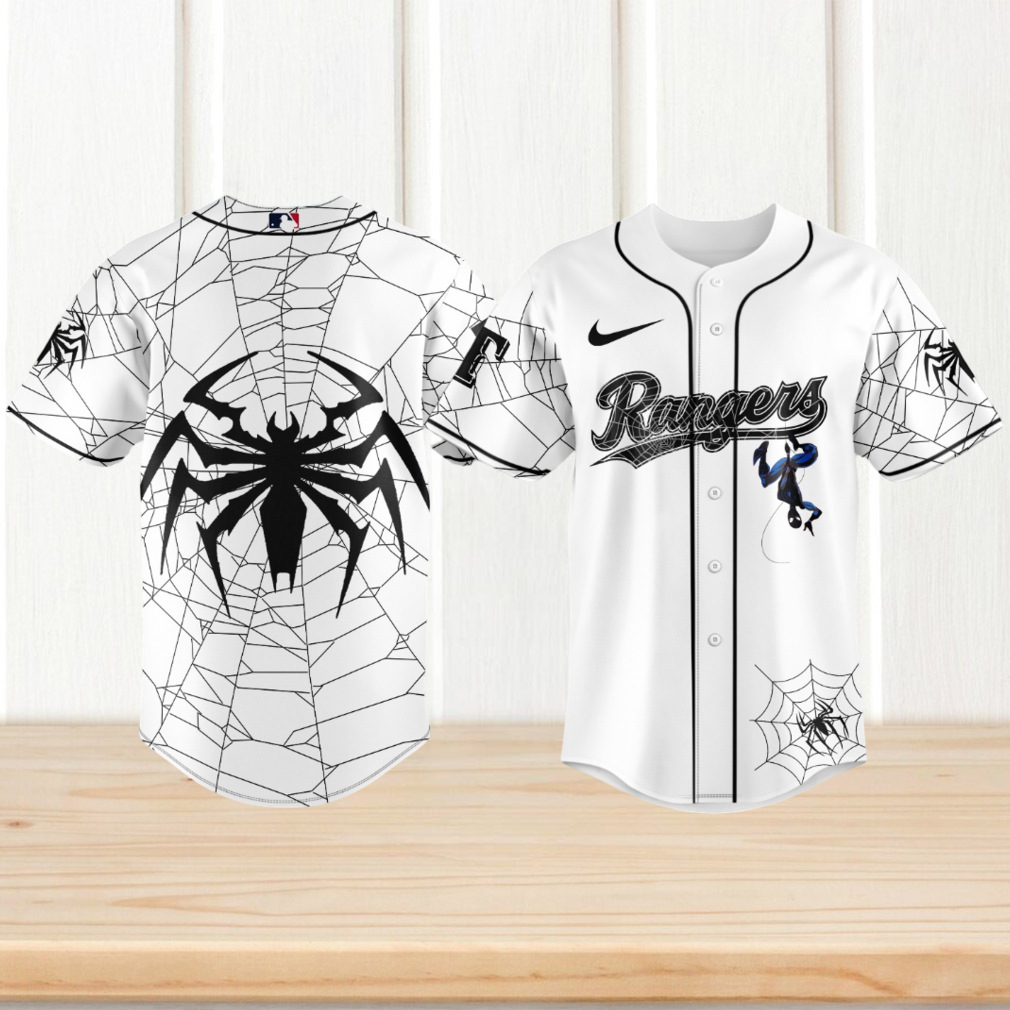 ▶️ About Texas Rangers Spider Man White Web Baseball Jersey – 3D T-Shirt