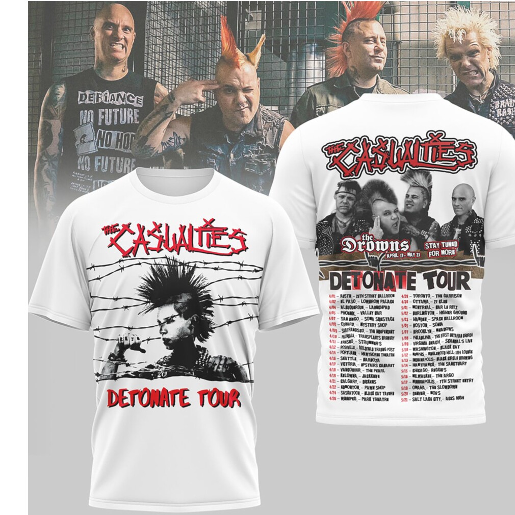 ()▶️ About The Casualties Detonate Tour Punk Rock World Tour 2026 Vintage White Graphic Tee – 3D T-Shirt