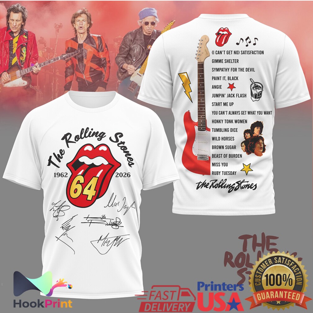 ▶️ About The Rolling Stones 64th Anniversary 1962 2026 Signatures Tracklist T Shirt – 3D T-Shirt