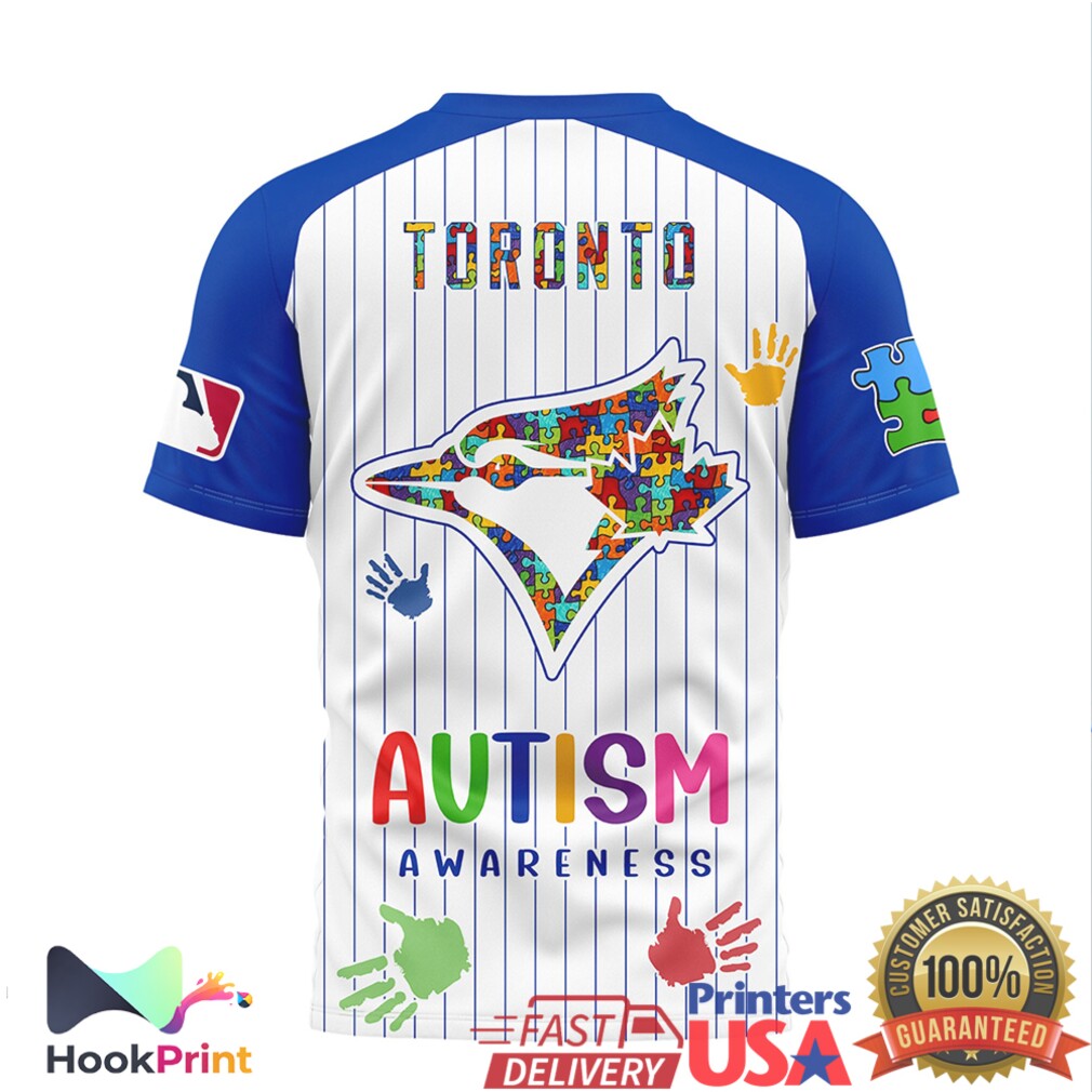 ▶️ About Toronto Blue Jays Autism Awareness Puzzle Logo Pinstripe T Shirt – 3D T-Shirt