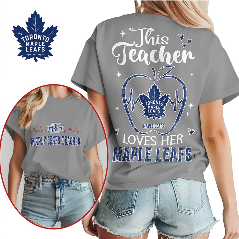 Toronto Maple Leafs Teacher Loves Her Team Graphic NHL Hockey Fan Apparel Shirt