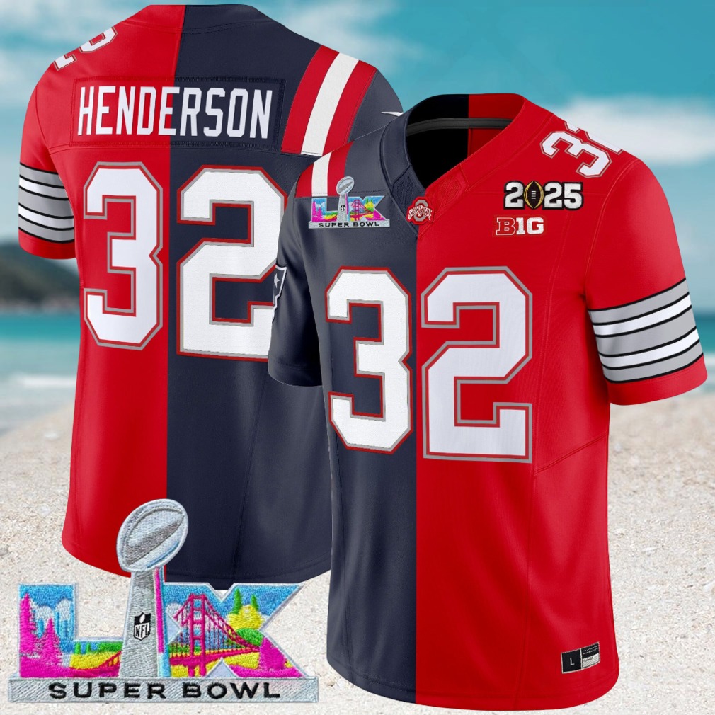 TreVeyon Henderson Super Bowl LIX 2025 Split Custom Football Fan Apparel Jersey