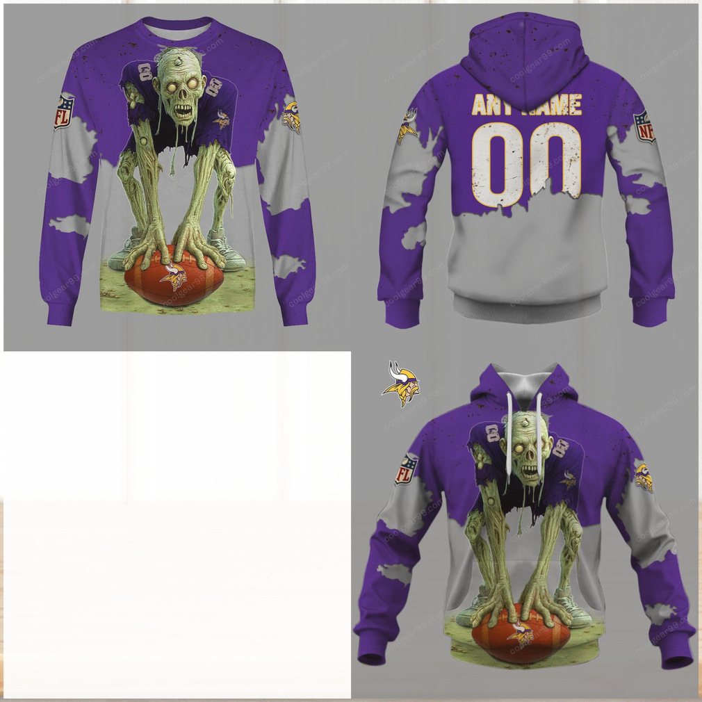 ▶️ About Undead Fan Minnesota Vikings Custom Zombie Football Hoodie – 3D T-Shirt