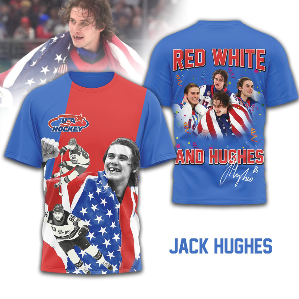 ▶️ About USA Hockey Jack Hughes Red White and Hughes Signature Series Fan Shirt – 3D T-Shirt