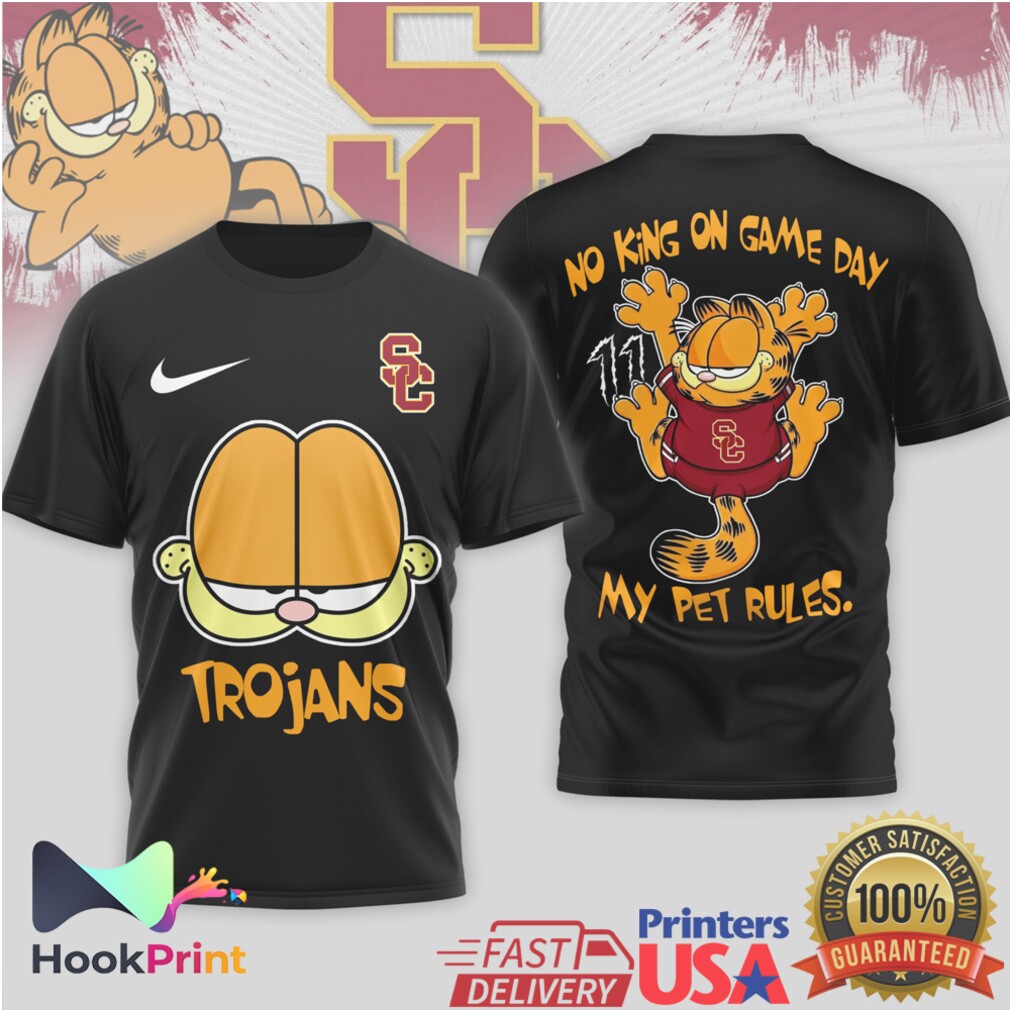 ▶️ About USC Trojans Garfield No King On Game Day My Pet Rules T Shirt – 3D T-Shirt
