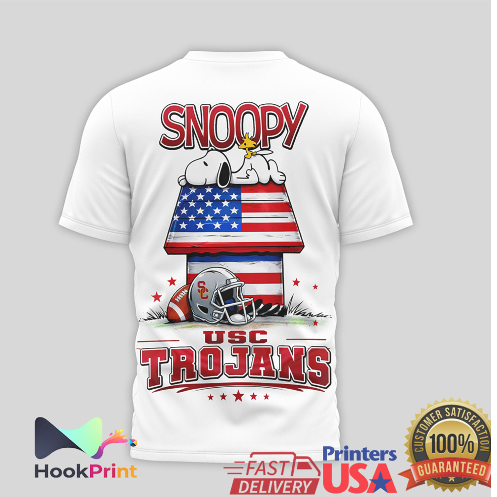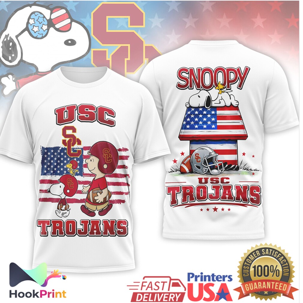 ▶️ About USC Trojans Snoopy Charlie Brown American Flag Sports T Shirt – 3D T-Shirt
