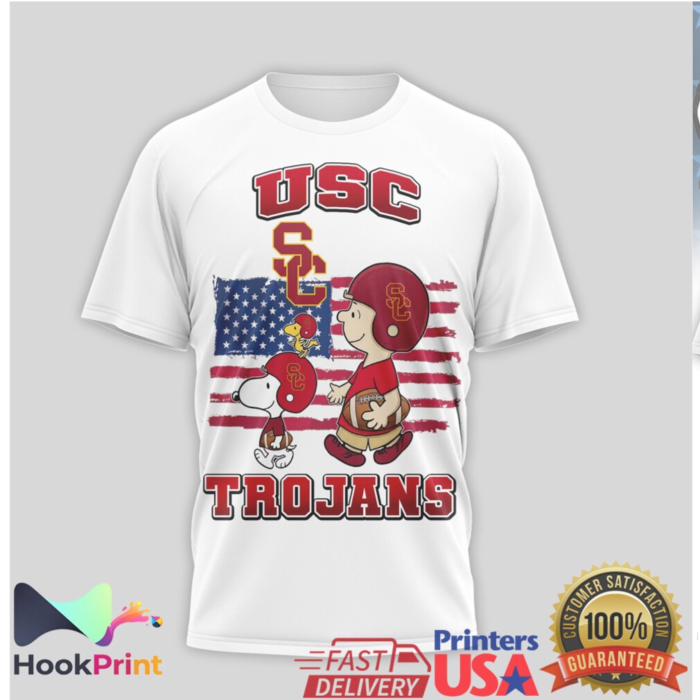 USC Trojans Snoopy Charlie Brown American Flag Sports T Shirt
