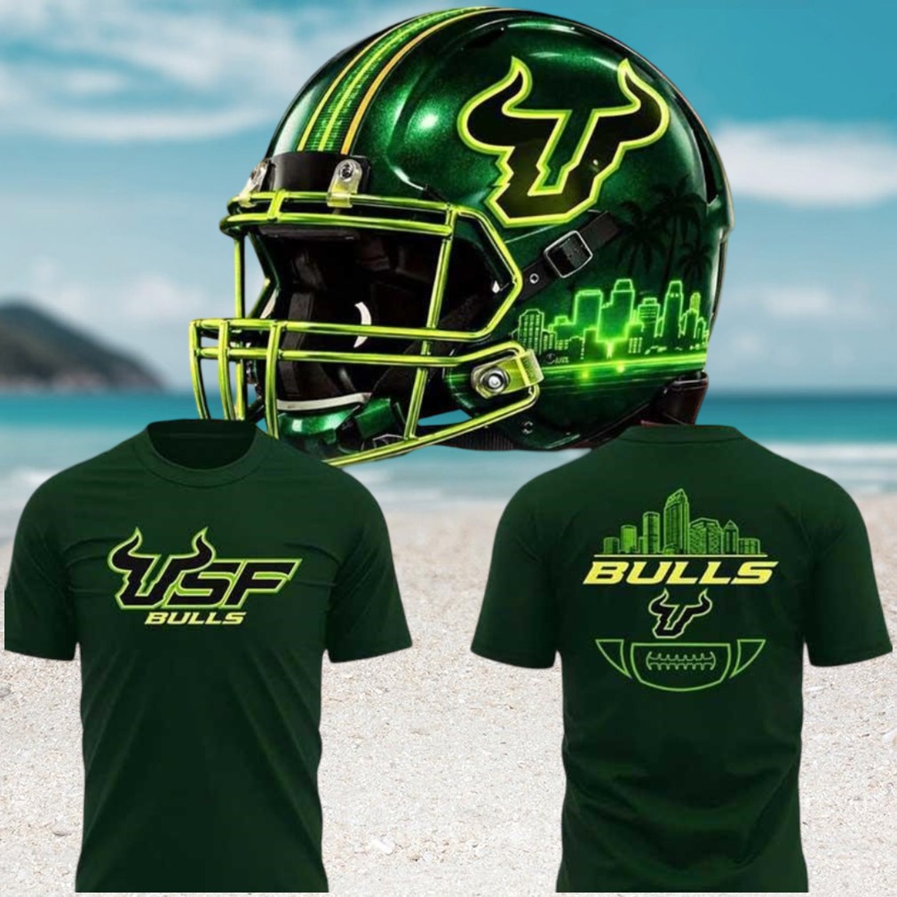 ()USF Bulls Green Football Helmet City Skyline Graphic Tee College Sports Fan Apparel, V-neck, Sweater Hoodie and Long Sleeve tee