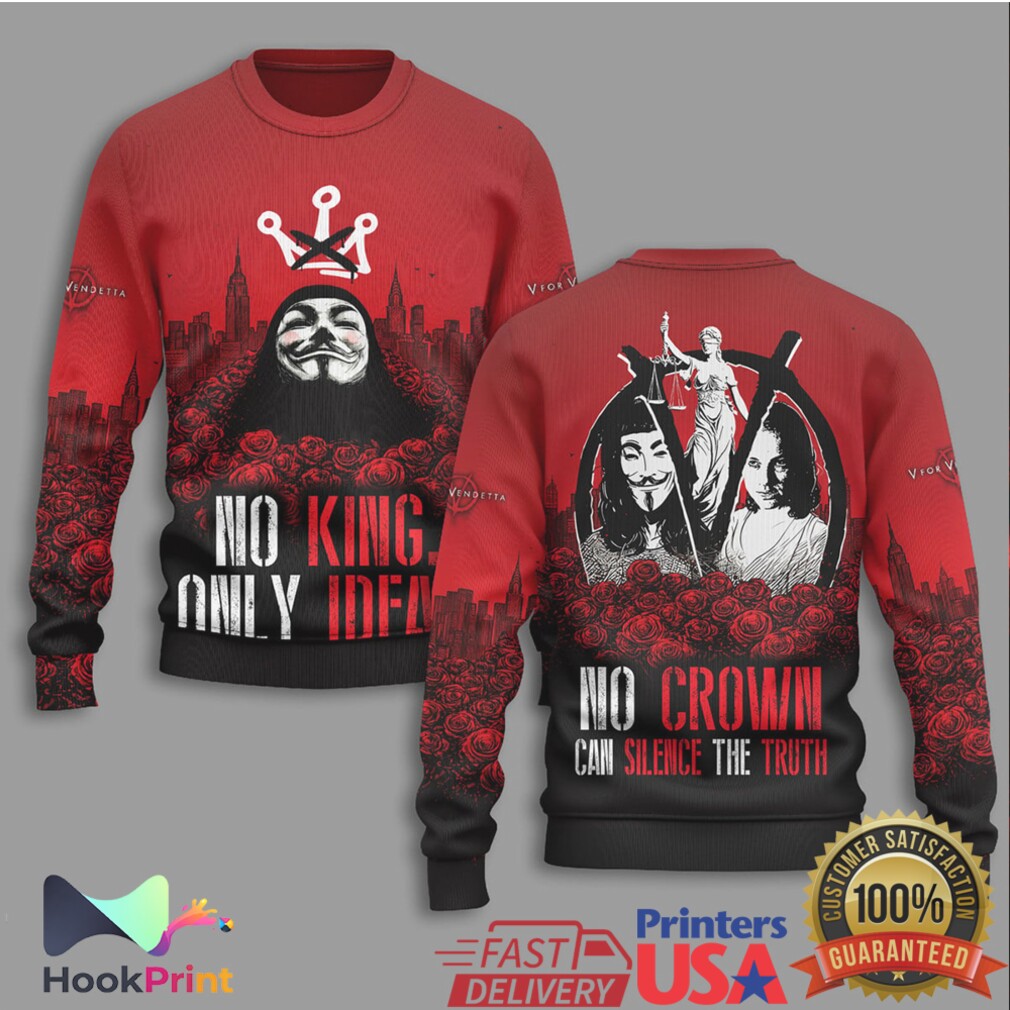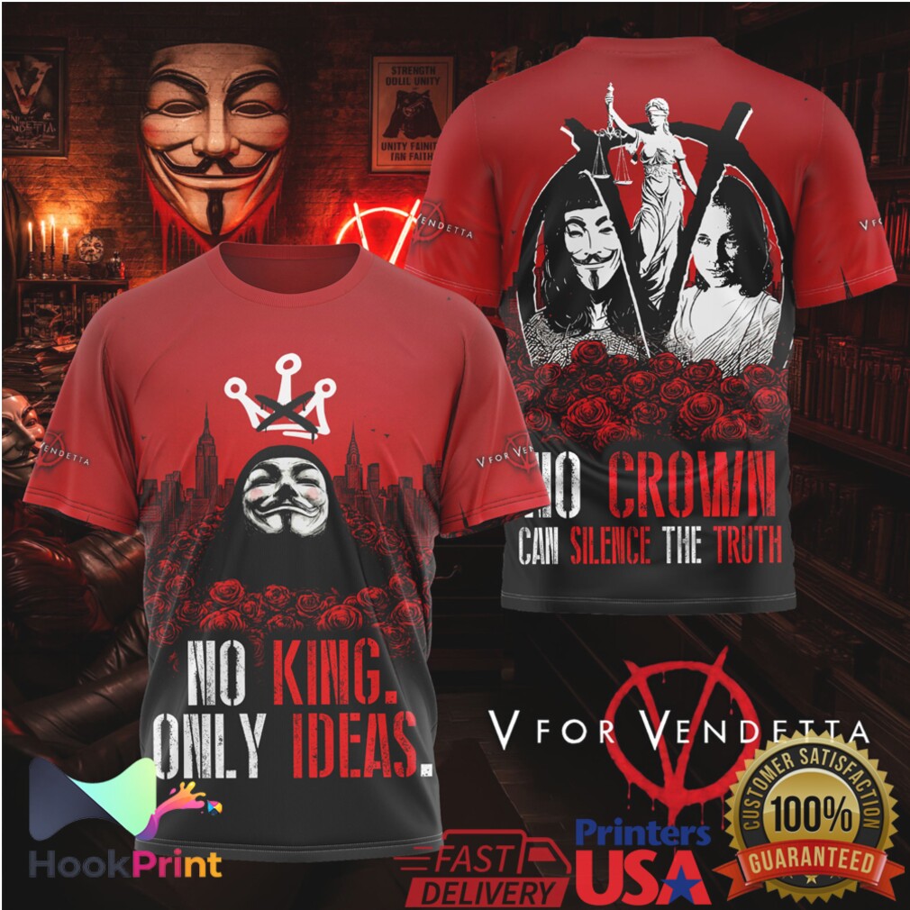 ▶️ About V for Vendetta No King Only Ideas Silence The Truth Graphic T Shirt – 3D T-Shirt