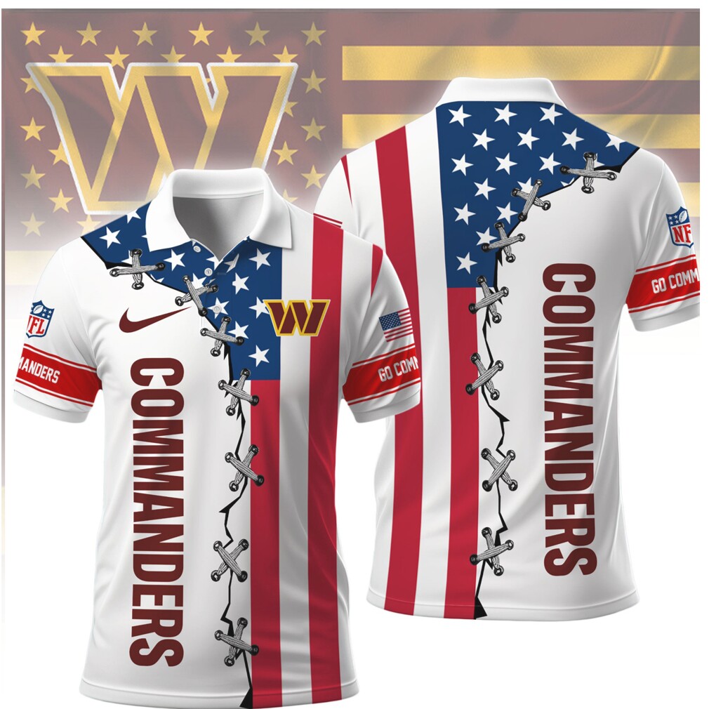 ▶️ About Washington Commanders American Flag Patriotic Performance Polo Shirt – 3D T-Shirt