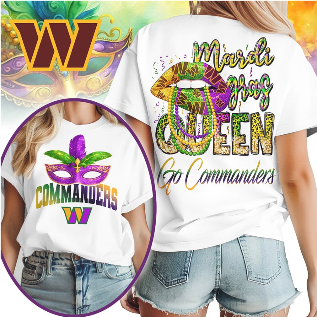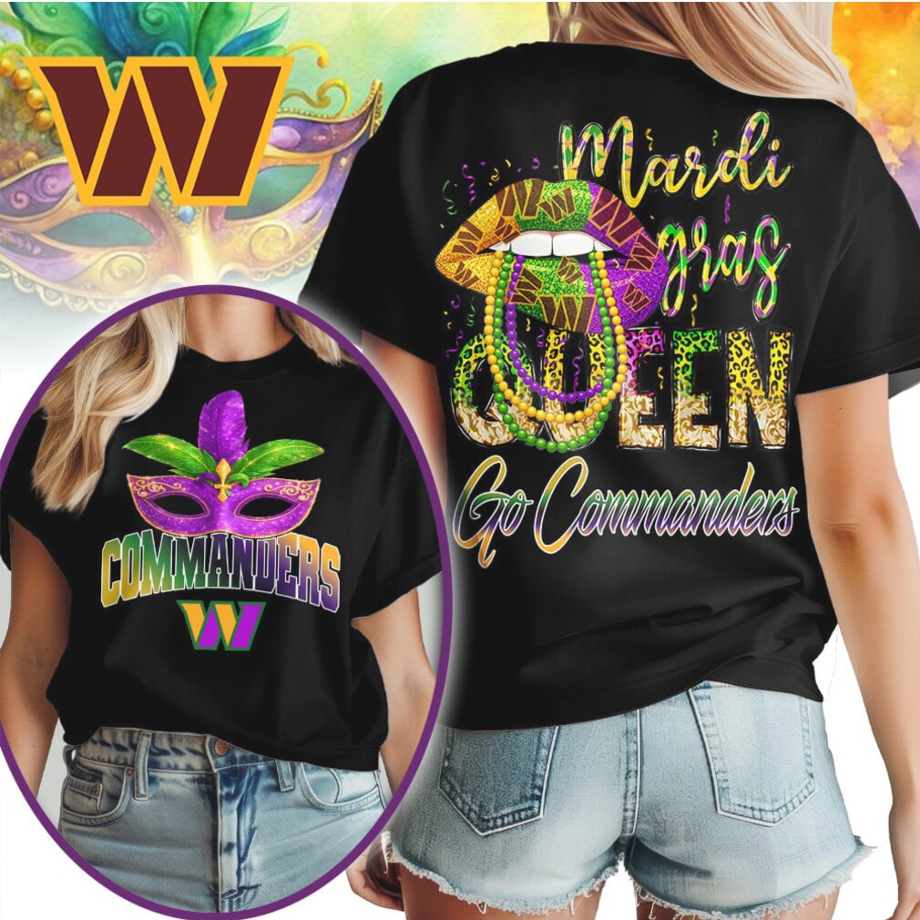 ()▶️ About Washington Commanders Mardi Gras Queen Festive Football Fan Graphic T Shirt – 3D T-Shirt