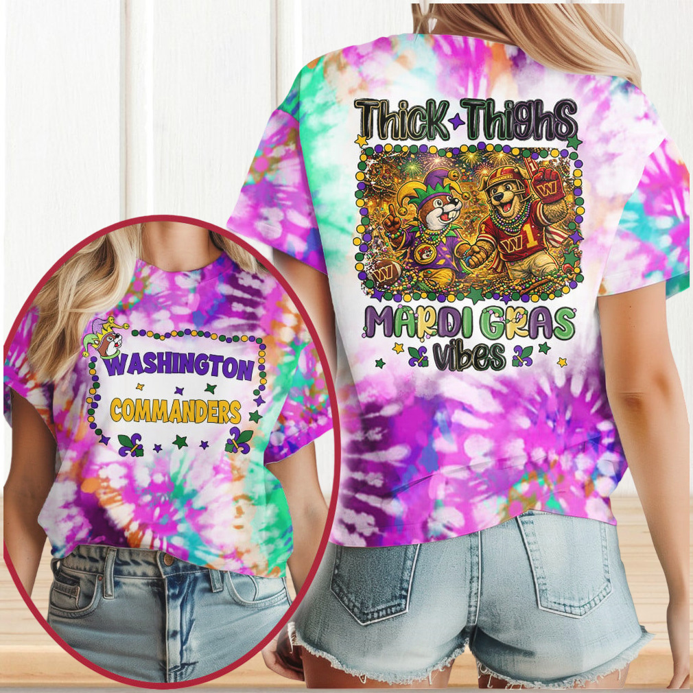 ▶️ About Washington Commanders Mardi Gras Vibes Thick Thighs NFL T Shirt – 3D T-Shirt