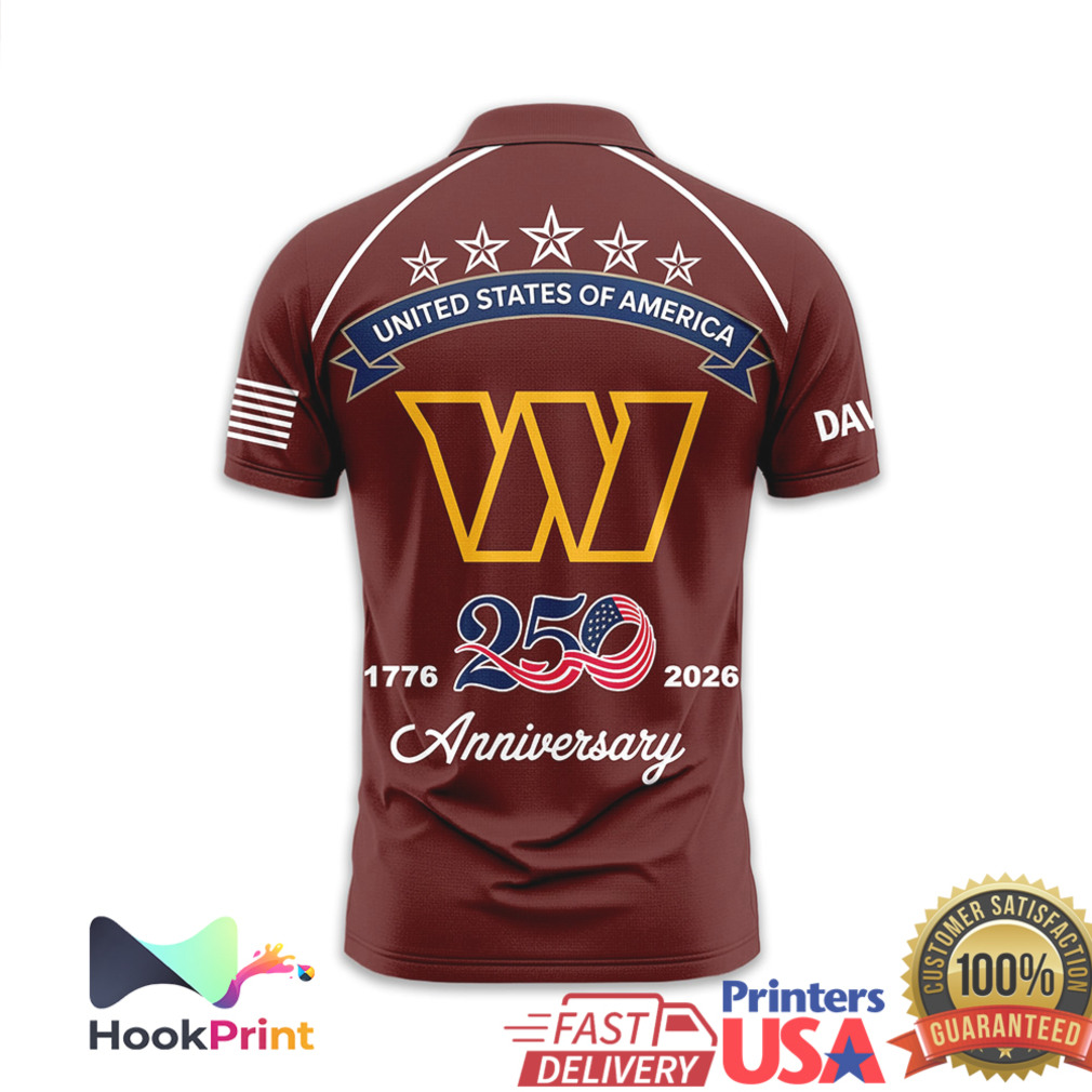 Washington Commanders USA 250th Anniversary 1776 2026 Patriotic Polo Shirt