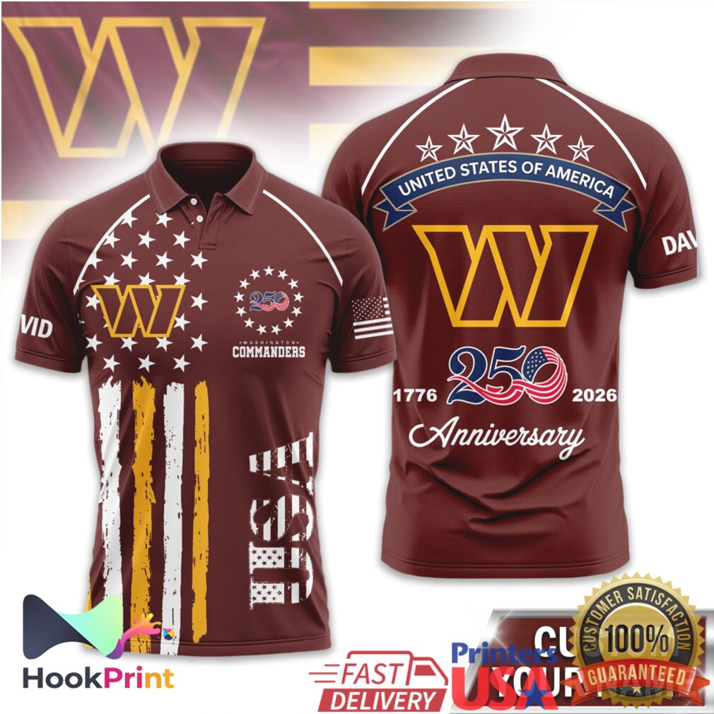 ▶️ About Washington Commanders USA 250th Anniversary 1776 2026 Patriotic Polo Shirt – 3D T-Shirt