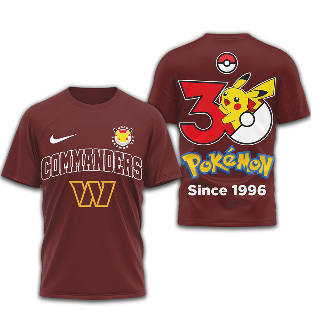 ▶️ About Washington Commanders x Pokemon Pikachu 30th Anniversary Fan T Shirt – 3D T-Shirt