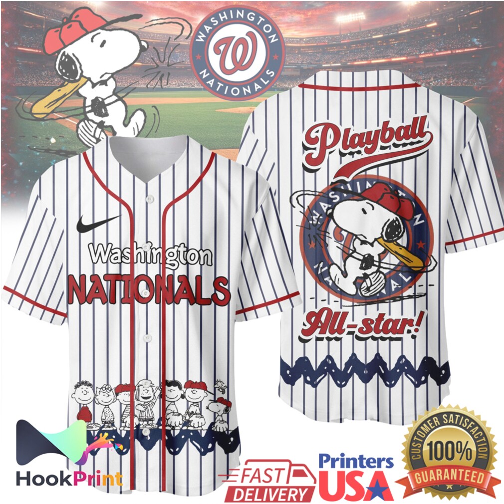 ▶️ About Washington Nationals x Peanuts Snoopy Playball Baseball Jersey – 3D T-Shirt
