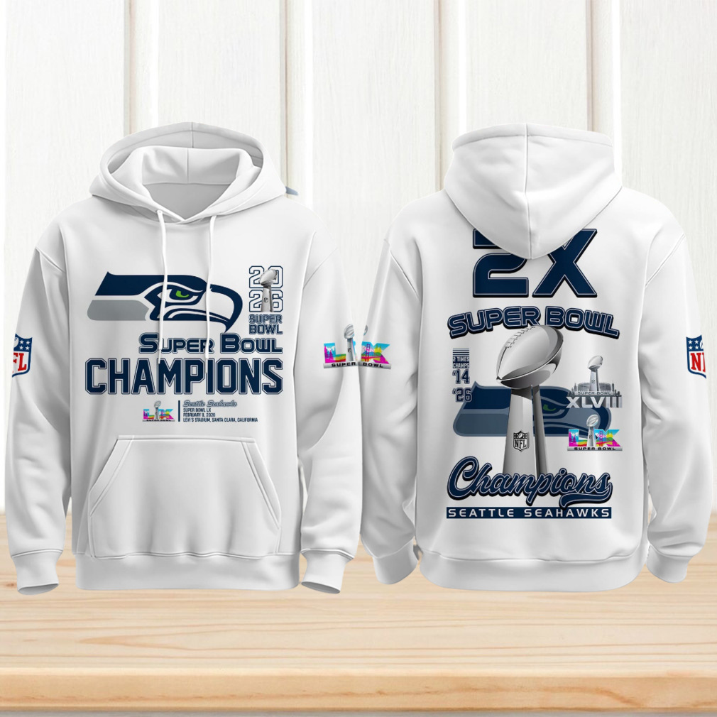 ▶️ About White Seattle Seahawks 2X Super Bowl Champions Commemorative 2026 Victory Graphic Hoodie – 3D T-Shirt