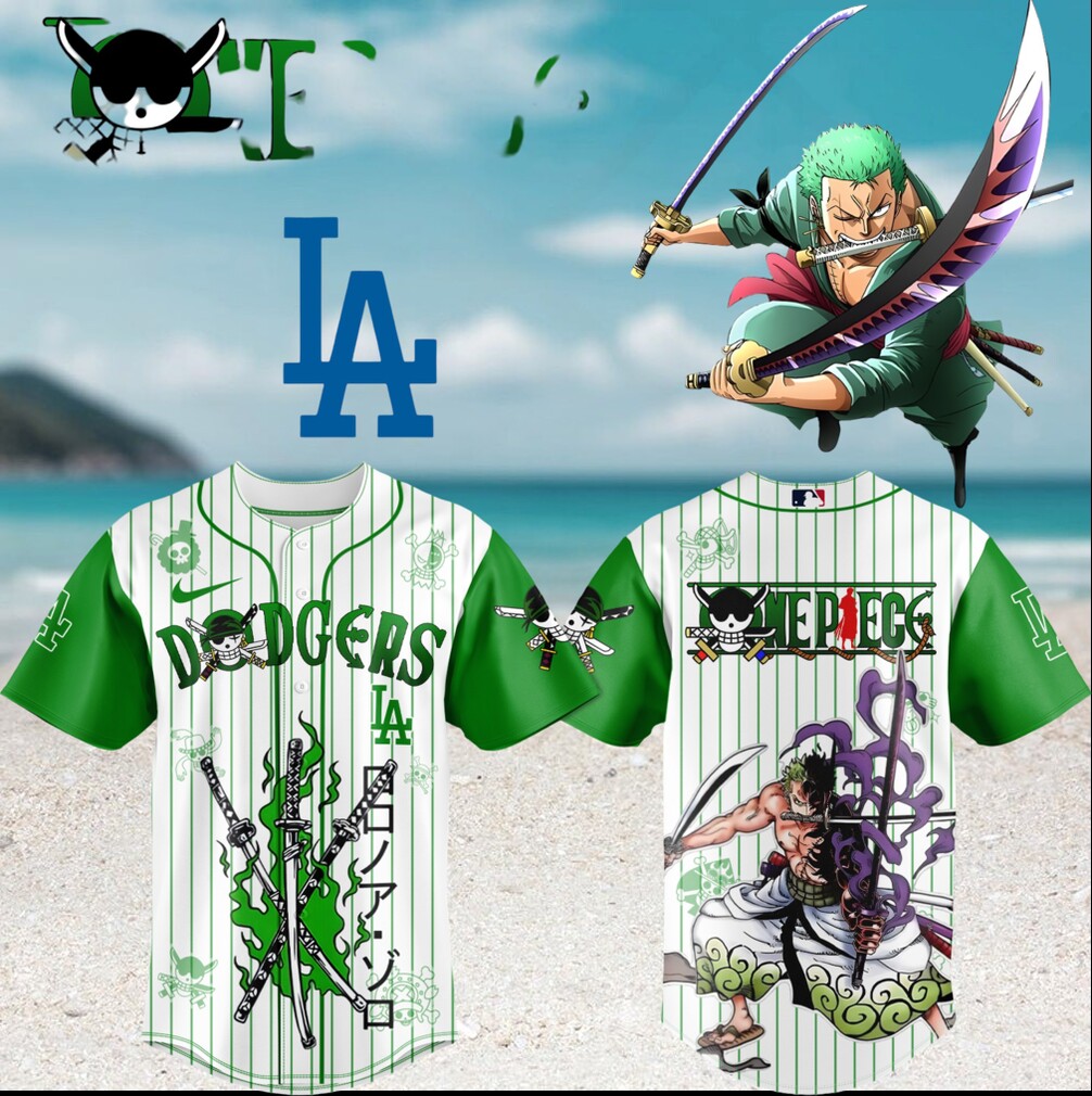 ▶️ About Zoro Roronoa LA Dodgers One Piece Anime Baseball T Shirt – 3D T-Shirt